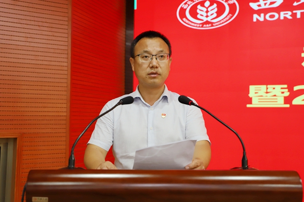 为弘扬先进,树立典型,充分发挥党支部的战斗堡垒作用和共产党员的先锋模范作用,6月27日下午,学院在北绣山活动中心南报告厅举办“七一”表彰大会。学院党委书记曹军会、副院长(主持工作)姜雨、兼职党建组织员侯文通、副院长赵运良、副院长凌飞、副院长杨小军、副院长王小龙,各党支部委员和党员代表线下参会,其余党员线上参会。会议由学院党委副书记王力主持。