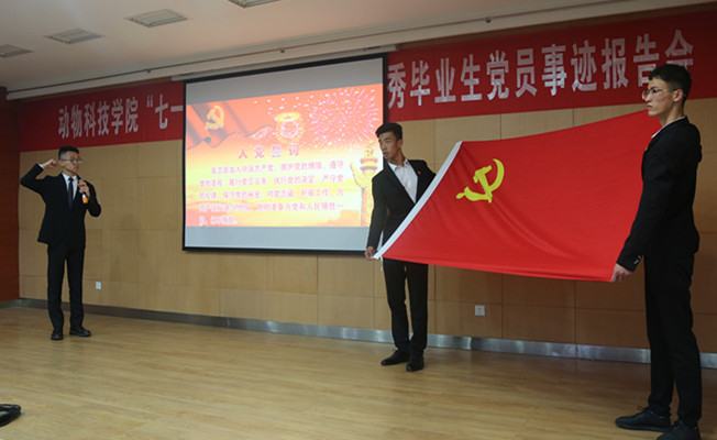 动科155班毕业生周彩妮从大一开始一直担任学生干部,团支书、班长、班主任助理、院团委宣传部副部长、记者团团长等,不论在任何岗位,她始终坚持为师生服务,做好上传下达,完成各项任务,自觉培养“四个意识”。她说:我深知自己身上还有许多缺点需要去改进,我将虚心求教,向身边的优秀党员同志们看齐,以一名优秀共产党员的标准严格要求自己,努力学习,扎实工作,为母校争光。