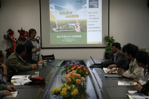 10月19日上午,学院迎来嘉吉公司领导卓文强先生一行8人,在四号楼一层会议室举办专场招聘会。学院党委副书记兼副院长王晓娟老师、专职辅导员刘铂、全体兼职辅导员及部分毕业生参加了此次招聘会。