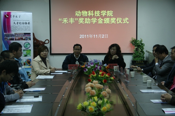 禾丰牧业股份有限公司是优秀国家级农业产业化重点龙头企业,是中国饲料工业协会副会长单位。在海角网 设立禾丰奖学金,分设神笔奖、自强不息大学生奖、外语学习标兵、优秀学生干部等九项奖项。每年奖学金金额两万元,每次奖励18名学生,先后共奖励优秀学生百余人。