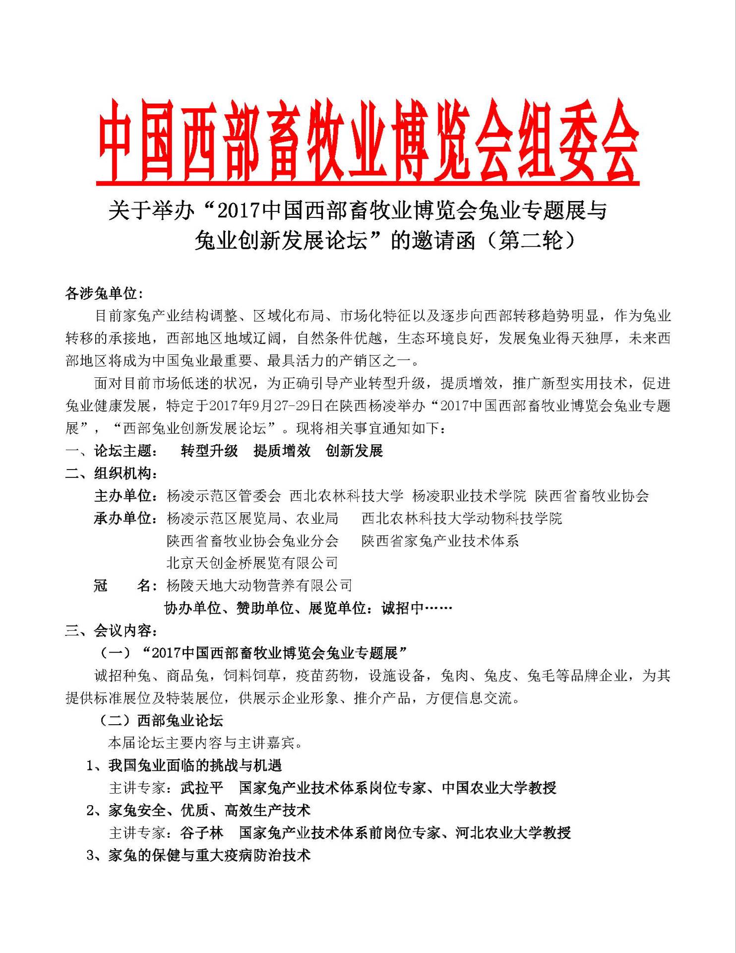 海角网 举办“2017中国西部畜牧业博览会兔业专题展与兔业创新发展论坛”的邀请函(第二轮)