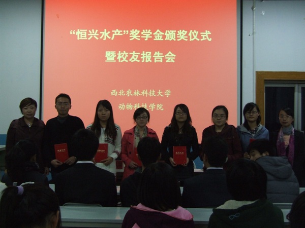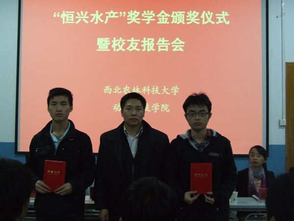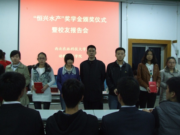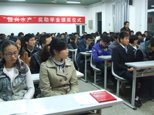 10月28日晚,2011-2012学年恒兴奖助学金颁奖在就业中心招聘大厅隆重举行。广东恒兴集团湛江养殖技术服务有限公司总经理王金才校友、广东恒兴饲料实业股份有限公司行政人事中心副总经理王友国、学院党委副书记兼副院长王晓娟及全体专兼职辅导员参加活动。