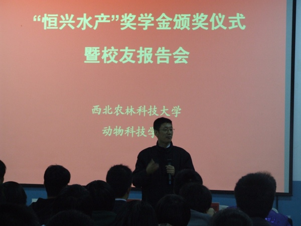 王友国副总经理为获得恒兴骨干奖学金的同学颁奖