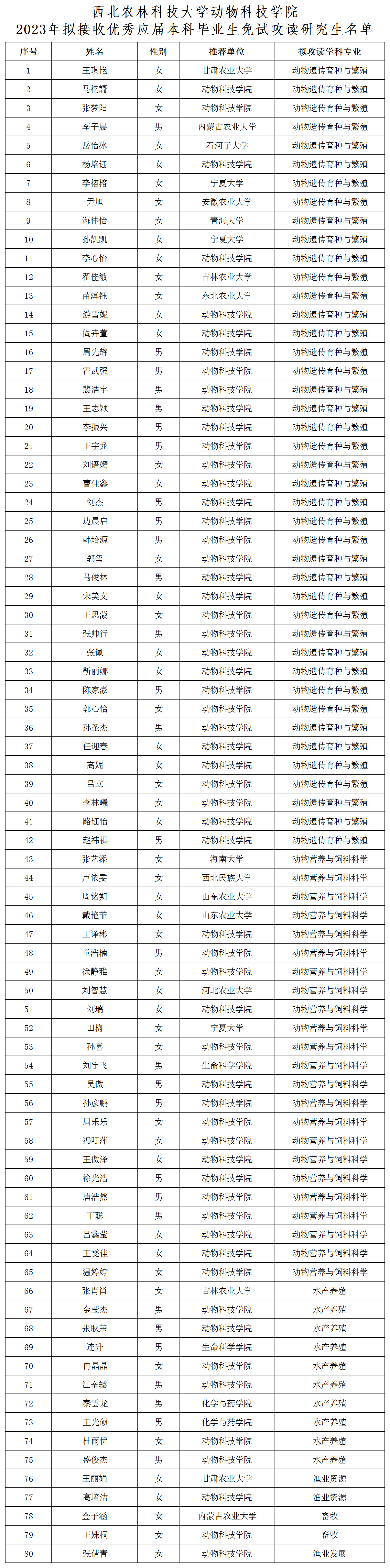 根据学校《海角网 做好2023年接收优秀应届本科生免试攻读研究生工作的通知》及学院《海角网 做好2023年接收优秀应届本科毕业生免试攻读硕士学位研究生工作的通知》要求,经学生本人申请,学院推免工作复试小组考核,学院推免生遴选工作领导小组审核,拟接收刘瑞等80名本科生免试攻读研究生。现将名单予以公示(见附件),公示期为9月28日-9月30日。公示期间,若对拟录取结果有异议,请以书面形式向学院推免工作监督小组反映,联系电话:029-87092120。