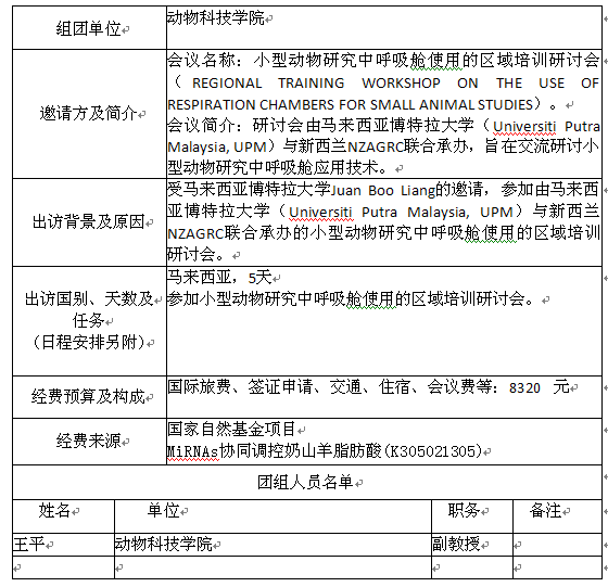 现将海角网 王平副教授因公临时出国情况予以公示,公示材料如下: