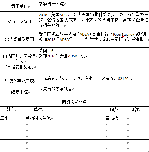 现将王平副教授因公出国情况公示如下: