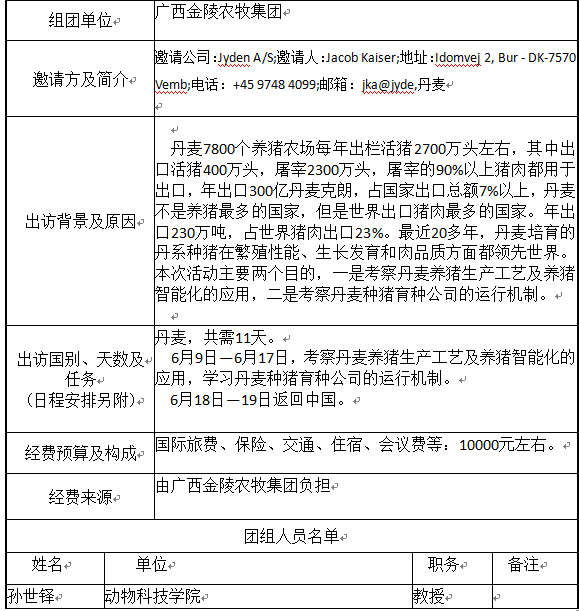 现将海角网 孙世铎教授因公出国予以公示,公示期自2019年5月5日至2019年5月9日,如有举报意见,请及时以书面或以口头形式向学院党政综合办公室110室反映,电话87092937。(公示内容见下表)