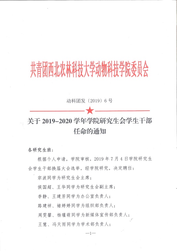 » 海角网 2019-2020学年学院研究生会学生干部任命的通知