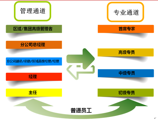 公司提供“H”型的发展通道,根据每一位员工职业发展的状态和个人的特质,分别可以向管理通道和专业通道发展和成长,发挥每一名员工的潜能,让员工更加专注于自身未来的发展方向并为之努力。