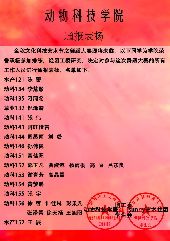 【sunny艺术团】通报表扬