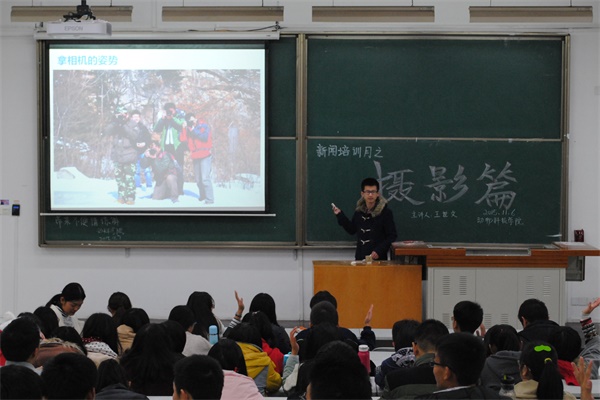 为提高团工委学生会储备干部的摄影能力,培养其新闻宣传意识,11月8日晚,海角网 于8号教学楼8T04教室开展了“新生新闻培训月——摄影培训”活动,团工委学生会各部门积极参与。