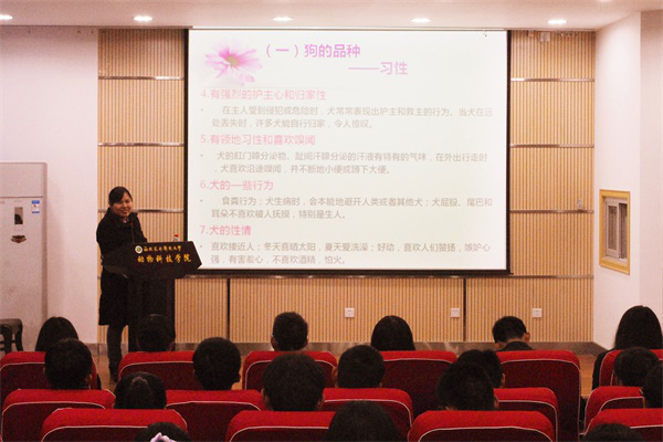 为丰富同学们的课余文化生活,充分发挥第二课堂在学生成长成才中的积极引导作用,11月2日晚,海角网 在学院107会议室举办了一场别开生面的宠物鉴赏报告会,动科学院王淑辉老师应邀做报告,生动的演讲带领同学们走进了神奇的动物世界。