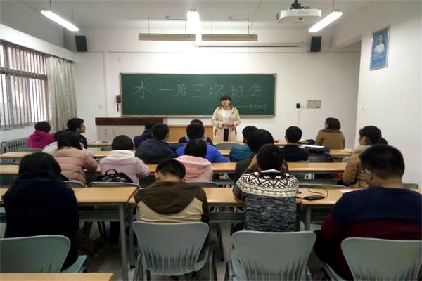 班主任周继术老师向同学们了解近期学习、生活等各方面的情况,为强调班级纪律,周老师向同学们详细解说《大学生手册》中对于学习、纪律方面的内容,提醒大家做好自我规划、认真遵守校纪校规及班级公约。周老师说:“班级公约对优秀的同学来说永远不是约束,而是督促大家做的更好,希望大家正确对待公约,充实度过大学生活”。助理班主任程丹雨则结合自己自身感悟,督促同学们认真听课,抓紧晚自习及课余时间好好学习。最后,班长曹峥和团支书肖宇就近期班团工作开展情况做了认真总结。