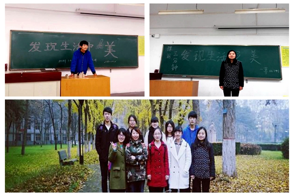 "一人之辩,重于九鼎之宝;三寸之舌,强于百万之师。"为增强青年学生的表达能力,培养其良好口才,提供展示自我的平台,11月1日起,海角网 在八号教学楼开展了以“发现生活之美”为主题的课前三分钟演讲活动。2014级全体同学积极参与。