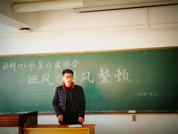 为培育班级文化,构建和谐班集体,精心打造良好学习环境,11月25日下午,动科152班在8615教室举办了本学期第六次班会。此次班会主题是“整顿班风纪律,社会实践先行。”