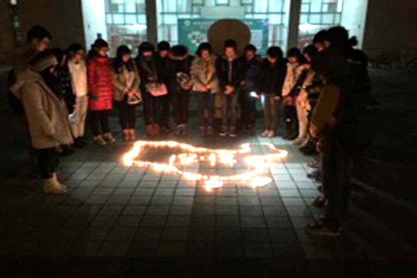 活动期间,工作人员积极向过往师生发放学院印发的“西安事变”宣传单,并结合宣传单内容向大家简要介绍“西安事变”。此外,大家积极号召同学们在横幅上庄严地签下自己的姓名,以此来表达自己对革命先烈的缅怀、对抗战历史的铭记以及对世界和平的期望,同时也借此表达自己对祖国蓬勃发展的信心与努力学习的决心。同日晚,工作人员将精心准备的蜡烛摆为中国地图和“12.12”的图案并将其点燃,一同在烛光中缅怀历史,缅怀先烈。