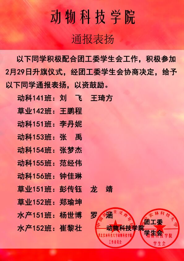 » 【团工委学生会】通报表扬