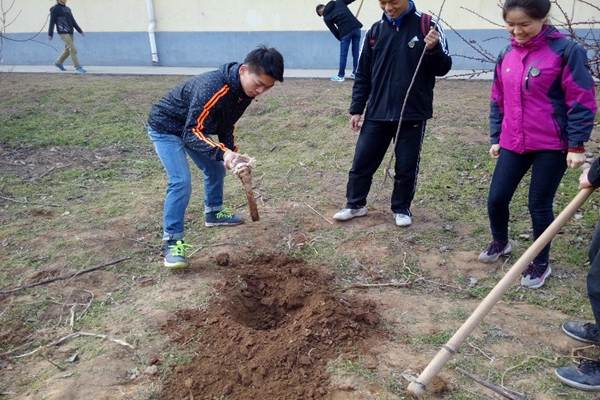 活动期间,同学们积极参与其中,团结紧张,积极活泼,热情参与。志愿者们手拿铁锹,有条不紊的开展着植树活动,将树放入树坑后,之见大家一锹一锹的铲起土填入树坑,随后堆起围堰,培实新土,提桶浇水,每一道工序均一丝不苟。大家相互配合,很快便完成了40棵樱花树的种植。一棵棵幼嫩的樱花树为寨东村注入了新的生机。植树期间,志愿者们与寨东村小学的学生们一同玩耍劳动,结下了深厚的友谊,同时这一活动获得了寨东村小学老师和学生们的一致好评。此行可谓“予人玫瑰,手有余香”,也让志愿者们深刻明白了环保的重要性。