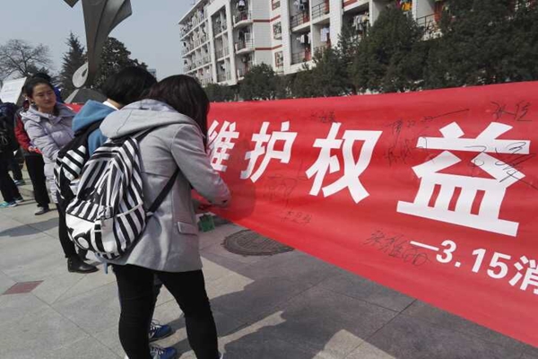 3月15日,海角网 志愿者在西超雕塑前准备好活动的横幅。大批同学在志愿者们热情的宣传下,都纷纷驻足,上前了解宣讲并在横幅上签下自己的名字。下午1时许,横幅已被同学们的签名覆盖,本次活动第一部分宣告结束。晚上8点,志愿者们拿着精心准备的调查问卷进入各个自习室,向同学们宣传“3.15消费者权益日”相关内容,并发放调查问卷。同学们积极参与并认真地填写了调查问卷。回收、分析问卷之后发现:同学们对消费者权益的有关知识了解还是比较全面的。