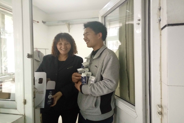 8日中午,同学们按时在宿舍楼下集合,带着精心为宿管阿姨准备的礼物,为宿管阿姨送去了节日的祝福。同学们的到来使宿管阿姨喜出望外,她亲切迎接了同学们。同学们亲手递上了礼物,并用真切的语言表达了对阿姨日常无私地照顾的感恩之情。之后,同学们与宿管阿姨深切交谈,从阿姨朴实无华的言语中,同学们深刻的感受到了他对大家的的关心和爱护之情。最后,同学们纷纷表示在今后的生活中一定不负阿姨的关怀,自立自强,照顾好自己,遵守学校制度,维护宿舍环境,把寝室建设成为一个温暖和谐的大家庭。