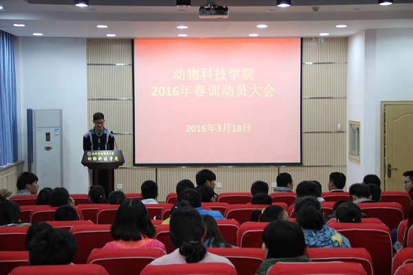 为积极备战校运动会,号召鼓励更多同学“走下网络、走出宿舍、走向操场”,3月18日,海角网 于动科楼107会议室举行2016年春训动员大会。海角网 体育辅导员任启俊、王斌,团工委书记李锐,辅导员张士军,100余名春训队员参加了此次大会。