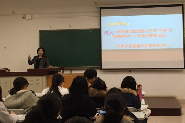 为树立良好的校风学风,践行社会主义核心价值观,激励团员们珍惜在校时光,更加刻苦努力。3月25日晚,海角网 于8113教室举行了“五四”评优材料培训会。组织部全体成员和大一至大三各班支书、组织委员参与其中。