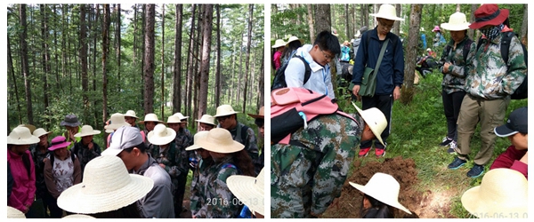 2016.6.13早上我们就被送到平河梁,开始了土壤实习,同学们也亲自进行土壤剖面的挖掘,观察并且触摸了各个土层的构造,随后又观察了红桦树林,当马老师给我们讲到红桦树皮可以写情书的时候,不管单身还是成对的,都纷纷开始扒红桦树皮,心里面打着自己的小算盘,打算回去写自己的小情书。