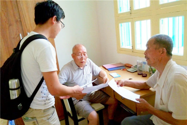 与村子老党员交流