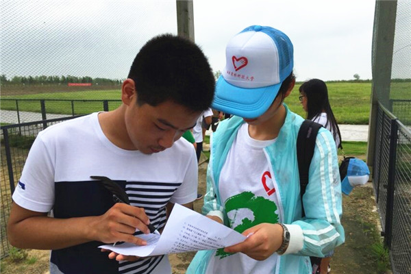 团队的初次到来受到了保护区工作人员的热烈欢迎。保护区科研科副科长赵永强先生在办公室与同学们进行了深入的交谈,向同学们简要介绍了保护区的区域分化及保护状况,使同学们对其有了一个初步的了解。随后,工作人员带领同学们参观了景区。期间,队长龙靖安排了队员们分工合作,向沿途的游客发放了调查问卷,收集了他们对于湿地保护的意见及建议。通过对调查问卷上的信息进行汇总和分析,同学们总结得出,相较于八九十年代,近年来盐城湿地的保护工作已经相当到位,但还应加强宣传,促进全民湿地保护意识的形成。