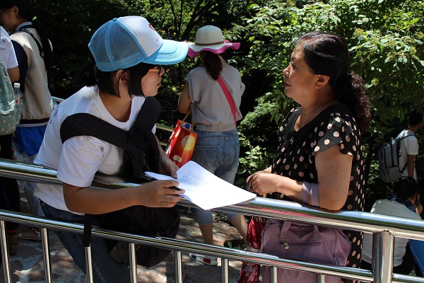 沿着山路一路前行,队员们仔细观察红崖峡谷内内主要带动经济发展的服务类型,并详细记录,分析其发展前景,思考讨论经济进一步发展的关键措施。通过仔细观察,了解到峡谷内为实现社会公平,在地区内制定严格的规章制度,并严格执行。对于违反规定的行为举动,采取严厉的惩罚措施。例如,对于半路私自允许乘客上车的司机采取罚款100元的处罚措施。通过采访调查游玩游客,队员了解到该制度避免了关系户的出现,体现了峡谷管理人员对社会公平的重视,有效地减少不必要的争执,获得了游客的高度认可。通过一路走访调查,队员们对当地经济发展有了更加深入的认识,也掌握了其基本现状,为采取应对措施,帮助其实现经济转型奠定了坚实基础。