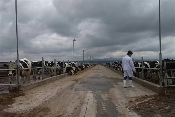 在调研过程中,队员们还学会了干奶牛的筛选与处理的相关操作以及产后护理的步骤。在筛选过程中,队员们首先从数据库中调出干奶牛的耳号,再去相应的泌乳棚找到相应的牛将其赶至挤奶厅转盘中进行安倍宁药物的注射,以使奶牛在干奶期不再分泌乳汁并维持乳房中的营养成分。同时,为防止妊娠结束的奶牛患产后瘫并治疗此疾病、增强其产后体质,队员们对其进行胃肠给药操作,帮助奶牛完成产后的回复和体魄的增强。