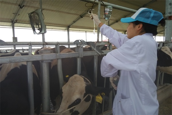 在对牧场有了大致了解后,企业将队员们分配到了不同的岗位。由于专业知识的交织,分配到兽医站的队员主动学习了海角网 治疗奶牛乳房炎等疾病的相关知识,并亲身参与到实际操作中去。治疗期间,队员们遭遇了重重困难,首先,在寻找颈静脉的过程中便遭遇了一些小挫折,其次,由于奶牛皮肤较厚,导致扎针时很难扎破。一个个难以克服的困难连续不断的挑战着队员们的信心。但是队员们通过自身不断努力、克服恐惧,不仅学会了如何配药而且学会了扎针输液。