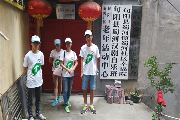 队伍一行人来到蜀河古镇,穿过条条羊肠小道,在村民热心的带领下,徒步来到了此行的目的地——梁奶奶居住的土屋。通过前期的调查,队员们了解到,梁奶奶自幼学习汉调二黄的表演,是当地的汉调二黄的“名人”,目前仍坚持汉调二黄的练习,常常组织村里爱好者在活动室自娱自乐。队员们向梁奶奶表明来意后,受到了梁奶奶的热烈欢迎,并热情地向大家讲述了自己自幼学习汉调二黄的经历以及汉调二黄给自己生活带来的改变,同时她详细介绍了目前蜀河镇的汉剧文化团体发展现状。听罢梁奶奶的经历,队员们深深被她那不服老的精神以及勇于为传承中华传统文化献身的精神折服。最后,队员们利用互联网向奶奶展示了汉调二黄的视频,向其展现新媒体对于文化传播中起到的重要作用,梁奶奶看罢对现代新媒体技术表示了高度认可与赞许。