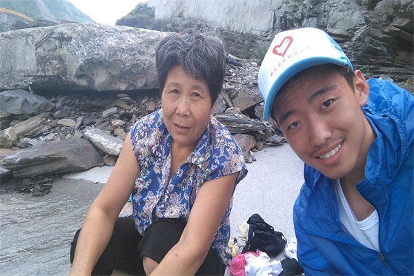与梁奶奶合影