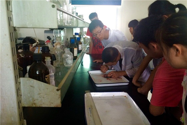 不登高山,不知天之高也;不临深溪,不知地之厚也,不去实践,便很难理解平日书本里学习的专业知识。此次三下乡之行,水产同学们走进水产站,切实了解科研实践中的渔业养殖。在科研助理符峥的带领下,队员们来到实验室,学习使用科研人员平日里所用的分析天平、显微镜等专业实验仪器;走进饲料厂,了解颗粒饲料机和膨化饲料机等不同种类的饲料制造仪器的具体用途;参观匙吻鲟育苗池,体验在当今现代化养殖设备的帮助下高质高效的养鱼过程。同学们在科研中探索,在探索中学习,在学习中寻求真知。队长杨世博表示,通过此次活动,自己认识了各种鱼类,从营养、免疫等方面了解到了在实际生产中如何养鱼,从而为自己后期专业课的学习奠定了良好基础。