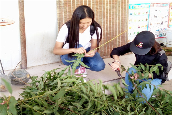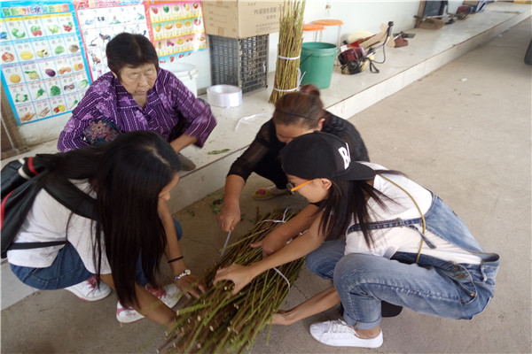 队员们帮助合作社工作人员整理桃枝