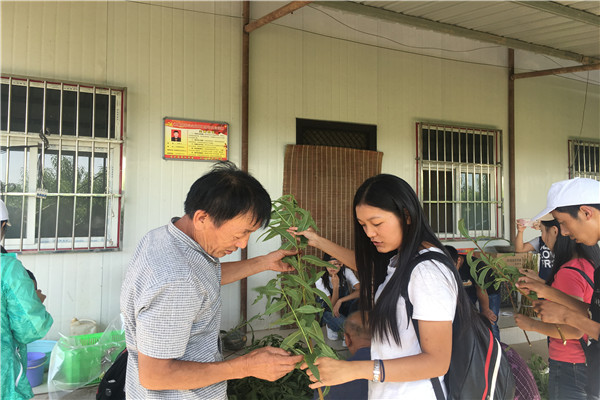 抵达目的地后,队长王慧与合作社负责人取得了相关联系,当下正是桃树嫁接的时节,于是在负责人的带领下,同学们帮助合作社其他工作人员一起加工桃枝。在工作人员的细心指导下,同学们很快便学会了修剪桃枝。工作人员还给同学们讲解了嫁接知识,因为桃树需要嫁接才能节桃,此时的嫁接工作繁重而重要。嫁接前需要将桃枝的多余枝叶剪除,留下芽胞,经过相关处理后,便可以将枝条嫁接到母树上,而一棵桃树上也可以结出不同品种的桃子。同学们很快就熟悉了手中的工作,默契而又欢乐地帮助合作社完成了修剪枝条的事务。工作完成后,负责人给同学们品尝了当下收获的桃子,同学们尝后赞不绝口。同学们一边享受桃子带来的清甜,一边与社里的人们一同谈论,感受培养桃树的种种奇妙。