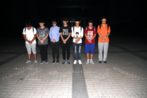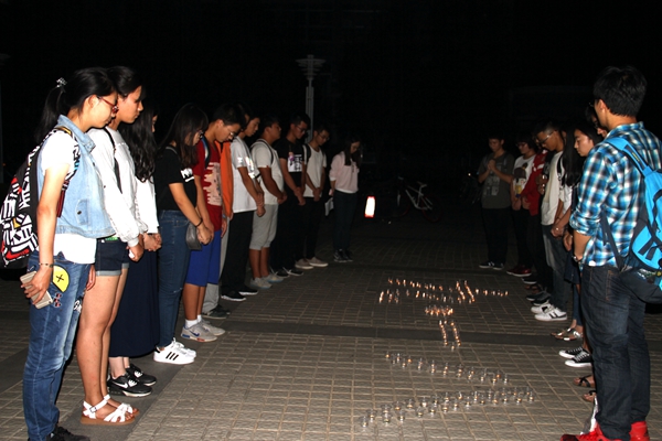 17日晚十点,活动准时开始。在主持人的带领下,活动在一段海角网 九一八事件的短片中正式拉开帷幕。同学们从视频影像中一同回顾了那段水深火热的悲痛史实。一幅幅震撼人心的画面,一个个惨绝人寰的场景,一声声声嘶力竭的呐喊,深深的震撼了在场每一位同学的心灵,那些画面和图文时刻警醒着同学们,即便此时身处于和平年代,没有战乱的恐慌,也应当时刻警惕着,回顾历史,缅怀先烈,让那些鲜血写出来的历史深深地铭刻进每一个人的内心。随后,同学们用蜡烛摆出“九•一八”的字样,在集体默哀三分钟。昏暗的烛光中,同学们表情悲哀沉重,或低头沉思,或闭眼默哀,均流露出了对在战争中逝去生命的沉痛哀悼,有的同学甚至满眼泪光。现场气氛一片庄严肃穆。此次活动为同学们带来了极大触动,学院组织部部长张禹表示:“在九·一八纪念日到来之际,居安思危,缅怀先烈,增强了我们的爱国热情。我们一定铭记历史,负重奋进,为了振兴中华而努力。”