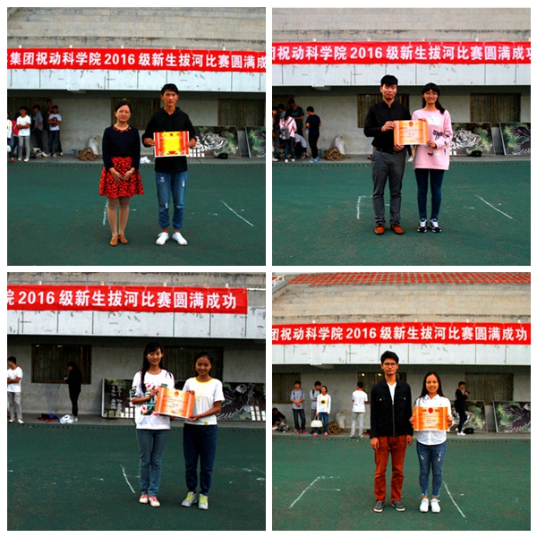 到场的老师们也为同学们加油打气。在齐声的呐喊中,同学和师生之间的距离被无限缩小。作为最终冠军的动科五班实力强劲,以全胜之姿势如破竹地摘下桂冠。个人素质强悍、竞技战术成熟、配合协作默契,是他们能够轻松夺冠的制胜法宝。失败的班级也毫不气馁,首轮战败的草业二班等便在外卡战中重返赛场,虽然未能拿得奖项,但他们永不放弃、一往无前的拼搏精神值得鼓励和赞扬。比赛过程中,令人们感动的不止是同学们挥洒汗水的身姿,场边啦啦队震耳欲聋的加油声。同学们失败后相互的安慰与鼓励更令在场的领导、老师们动容与欣慰,领导、老师和同学们之间的彼此理解和和关怀,体现了拔河比赛的真正意义。