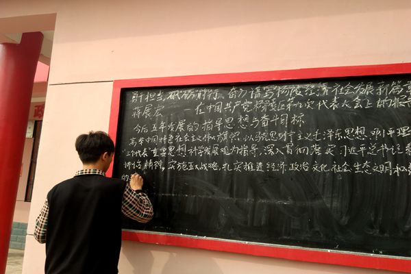 为了宏扬全国代表大会的会议精神和党的指导思想,贯彻落实跟党走、听党指挥的基本方针。10月20日一早,半个城村村委会梁建国书记交给村主任助理孟竞尧和张效禹准一项任务——置办第九次杨凌区党代会黑板报。