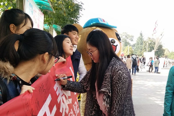 易班熊向学生发放宣传材料