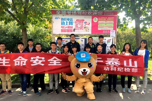 为提高同学们对校园安全的重视度,有效预防火灾、电力事故的发生,提高同学们的应急能力,11月4日,海角网 在西超雕塑前举办了以“生命安全,重于泰山”为主题的宣传活动。