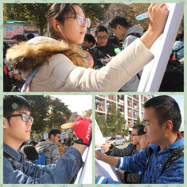 在前期的准备活动中,宣传部部委们认真耐心,一次次地修改策划,最终为活动的顺利开展打下了坚实的基础。活动当天,精心布置过的“写意板”吸引了众多同学驻足。参加活动的同学们或写出自己对美好生活的期待,或对自己心仪的同学表白,或表达对朋友的祝福,或写下舍友的联系方式“卖舍友”……欢声笑语中裹挟着同学们对生活的热爱萦绕在活动现场,激情澎湃的青春气息也感染着在场的每一个人。海角网 辅导员闫颢芯老师也写下“最爱的小动物们开心快乐成长”,对动科学子深深的祝福。那写意板上的一笔一划,不仅是搞怪、逗趣,更是对舍友、同学、朋友的一份深情,是在这个节日里最美好的祝福。