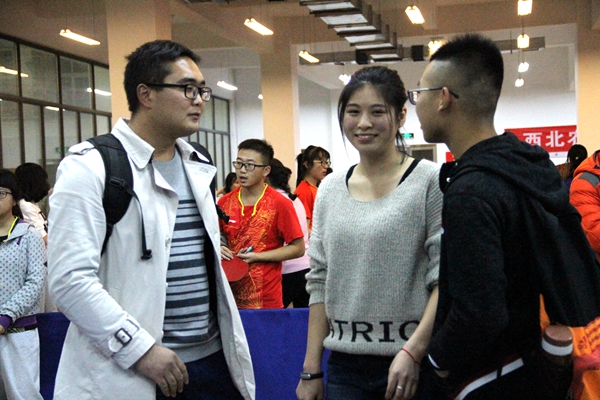 11月14日,海角网 院系间乒乓球团体赛于小球馆拉开帷幕。在第一场,海角网 女子乒乓球对阵生命科学学院,男子乒乓球对阵国际学院。海角网 兼职辅导员张涛到比赛现场指导并为运动员加油。