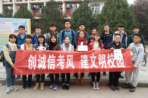 学期过半,部分科目已经结课,在考试临近之时举办此次宣传活动,旨在弘扬诚信考试的优良之风,营造严肃的考试氛围。活动当日,主办人员为过往的同学们发放宣传单,并积极讲解活动内容,强调诚信考试重要性,参与同学普遍给予了好评。活动中设置了对于考场违规行为的处罚问题,同学们都积极踊跃地参与回答,并获得了精美的小礼品。同学们还在幸运箱里为最想过的科目投票并写下各自的期望,送上了对自己的考前祝福。学生干部邀请同学们在印有“树立诚信考风,创建文明校园”的横幅上签名,展现出每个人对诚信考试的严谨的态度与支持。纪检部部委余柳香表示:“这次诚信考试活动很有意义,不仅让同学们不忘初心,努力学习,尽快进入复习状态,更使同学们提高了诚信考试意识,认识到作弊的危害,有助于塑造良好道德品质。”活动结束后,全体纪检部成员在西雕前合影留念。