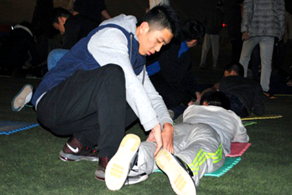 队员们训练结束后,部长还会帮助队员们放松腿部肌肉。有力而又柔和的动作,让队员在高强度的训练之后迅速恢复到平常状态。