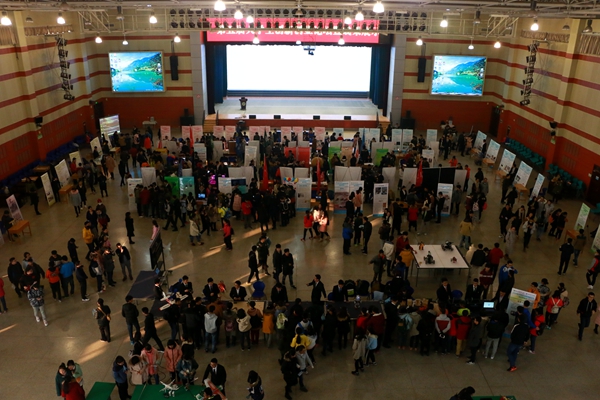 12月18日下午,以“大众创业,万众创新”为主旨的第五届大学生创新创业暨成果展示活动在北校区北绣活动中心圆满闭幕。本次活动聚集了我校学生的优秀创业成果,吸引了各学院的5000余师生前来观摩。