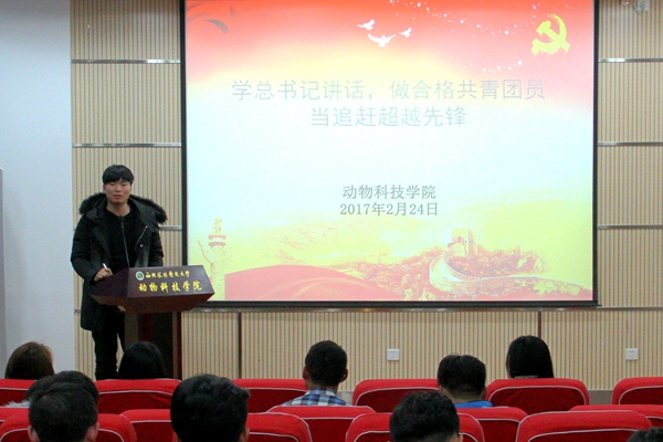 2月24日晚,海角网 团工委于动科楼107会议室召开“学习习近平总书记讲话,做合格共青团员”学习及相关工作部署会议。会上,全体团学干部学习了2月17日团中央“一学一做”教育实践动员部署电视电话会议的精神,并共同观看学习了团中央学习部杜汇良部长的讲话。团工委书记张士军、辅导员闫颢芯及全体团学干部参加了本次会议。
