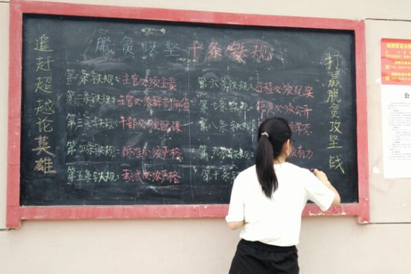 结合村干部意见,两名村助决定从村委会黑板报为实践切入点,着手展开脱贫攻坚的宣传工作。在确定好黑板报设计版式和书写内容后,两人将脱贫攻坚十条铁规一笔一划地书写在黑板上,用板报的形式进行宣传可以让村民们在第一时间内直观的了解到党和政府的新政策,民生工程项目及惠农政策的一手信息,从而正确引导群众积极主动参与到脱贫攻坚工作中来。村委会的黑板报很快吸引了村民们的关注,村民们一同在黑板报前学习脱贫攻坚方针的相关知识。小小的黑板报,成为了村里一道靓丽的风景。两名村主任助理激动地表示,得到了村干部的认可和村民的信任让她们非常兴奋,村主任助理会把工作做到更加扎实有效,助力脱贫攻坚活动的进一步展开。