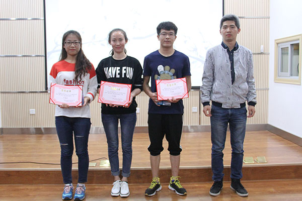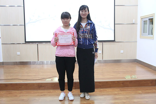 勤工外联部副部长康凌云为二等奖获得者颁奖